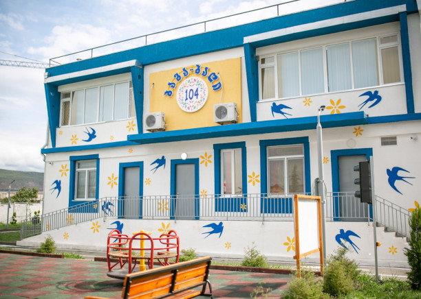 N104 ბაგა-ბაღი აღჭურვილია სახანძრო უსაფრთხოების, ვიდეოსამეთვალყურეო სისტემებით, უსაფრთხოების ბადეებით. ბაღს აქვს კეთილმოწყობილი ეზო, რაგბის მინი სტადიონი, ეკოლოგიურად სუფთა მასალისგან დამზადებული ატრაქციონები, სათამაშო მოედნები და მინი ავტოქალაქი.